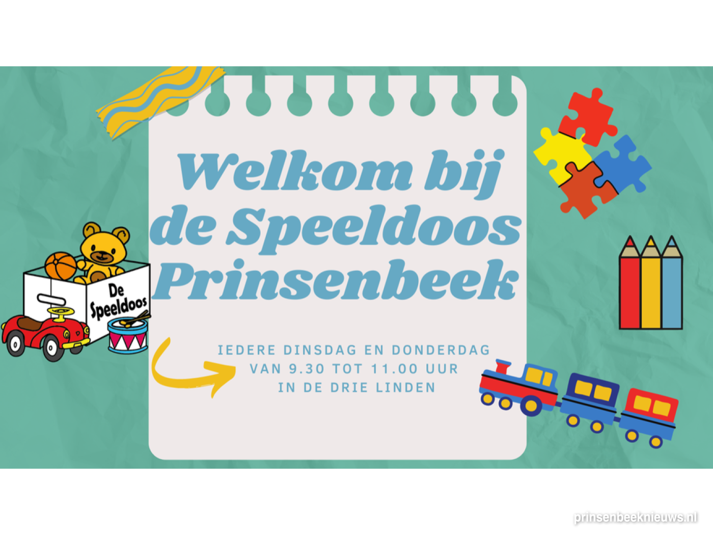 De Speeldoos is al jarenlang een begrip in Prinsenbeek. Elke dinsdag- en donderdagochtend, met uitzondering van de schoolvakanties, komen kindjes tot vier jaar met hun begeleiders naar De Speeldoos in De Drie Linden. Daar kunnen de baby’s en peuters heerlijk spelen, terwijl hun begeleiders gezellig bijkletsen en koffiedrinken