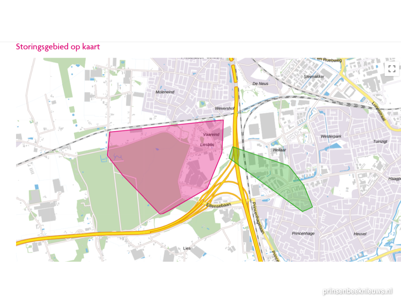 Stroomstoring omgeving Liesbos voorbijDe stroomstoring in de omgeving Liesbos en Vaareind is voorbij, meldt Enexis kort na 13.00 uur. In totaal 38 postcodes hadden donderdagochtend vanaf tien uur korter of langer geen elektriciteit. (Plattegrond: Enexis)Donderdag 23 april 2026 prinsenbeekliesbosvaareindstroomstoringenexis (Plattegrond: Enexis) Deel dit artikel op: 0[nexturl]