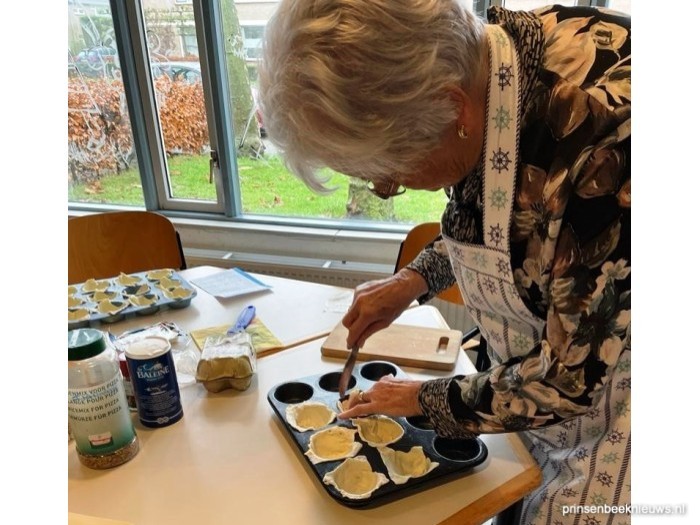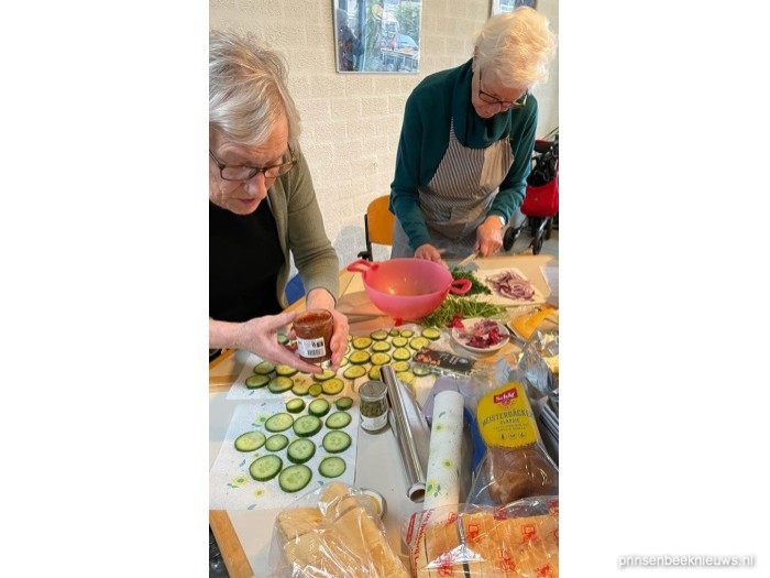 De schorten gingen voor en een groep gasten van de Zonnebloem maakte samen met een paar vrijwilligers - met dank aan de plaatselijke Albert Heijn - een keur aan zoete en hartige lekkernijen. Van een soepje, wraps met zalm tot smulstokjes met tomaatjes en mozzarella-bolletjes. En met lekkere fruitspiesjes was er extra aandacht voor ieders gezondheid.