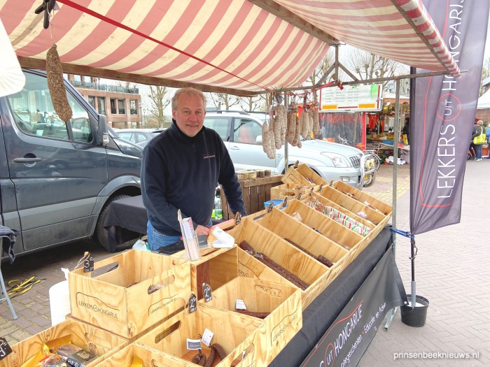 Het is zijn tweede weekmarkt na die in Ulvenhout, waar hij ook onlangs is begonnen. De winkel aan huis in Moerdijk heeft de Hongaar van geboorte al veel langer. Die runt hij samen met zijn echtgenote Marion. Op de Prinsenbeekse markt is het de zesde kraam, naast die met met kaas, vis, groenten, biologisch vlees en fournituren.