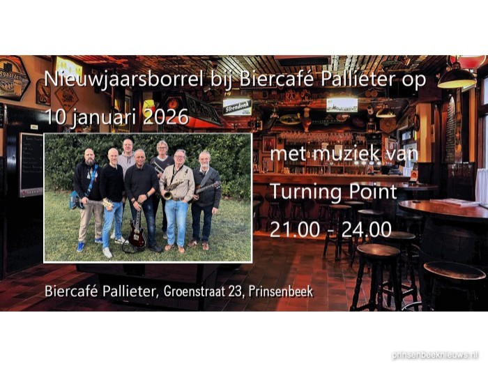 Nieuwjaar met Turning Point bij PallieterBiercafé Pallieter organiseert zaterdag 10 januari een nieuwjaarsborrel. De band Turning Point zorgt voor de muziek. Iedereen is welkom tussen 19.30 en 02.00 uur. (Foto: Turning Point)Dinsdag 06 januari 2026 prinsenbeekbiercafe pallieter (Foto: Turning Point) Deel dit artikel op: 0[nexturl]