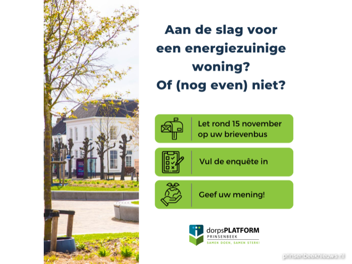 De enquête invullen kan tot en met 26 november. Onderzoeksbureau I&O-Research uit Amsterdam voert de enquête uit. De resultaten worden gepubliceerd via www.dorpsplatform-prinsenbeek.nl en www.prinsenbeeknieuws.nl. Naar verwachting zal dit medio januari 2024 zijn. Na publicatie volgt een toelichting op de resultaten van de enquête tijdens een bijeenkomst in De Drie Linden.