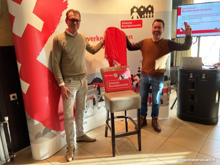 Buurtbewoners werden hier geïnformeerd over de werking en de voordelen van de buurtpreventie-app. Coördinator Buurtpreventie Breda Chris Aarts en vertelde dat dit al buurtapp nummer 139 is. Mede-initiatiefnemers Marcel Watzeels en Martijn Tenhacken onthulden het buurtpreventiebord.