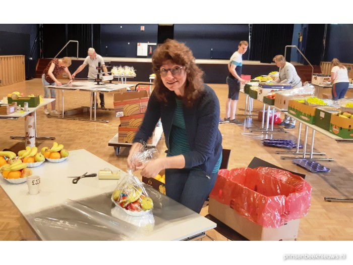 Tot en met vrijdag leveren zo’n 30 vrijwilligers de mandjes af, nadat ze die eerst veelal zelf thuis hebben opgemaakt. De spullen hiervoor konden ze woensdag binnen een toegewezen tijdsblok ophalen in De Drie Linden.