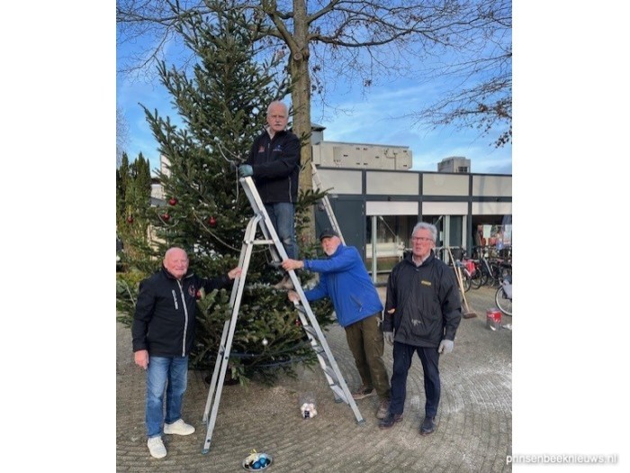 Niet alleen op de Prinsenbeekse Markt is het intussen een traditie, ook achter ontmoetingscentrum De Zilverberk plaatsen vrijwilligers elk jaar een kerstboom. Donderdag ging de klusploeg van De Zilverberk er mee aan de slag, en hij staat weer.