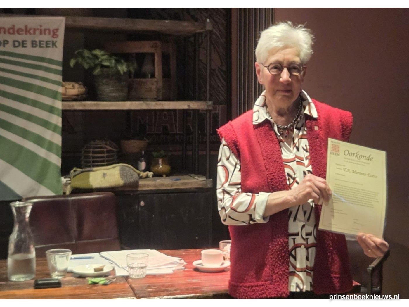Martens is al 21 jaar actief binnen de heemkundekring en vervult een belangrijke rol in onder meer de ledenadministratie en de verspreiding van kwartaalblad De Klepel. Haar nauwkeurigheid en betrokkenheid maken haar tot een onmisbare kracht binnen de organisatie. Voorzitter Van Melis sprak lovende woorden en overhandigde haar een boeket bloemen.